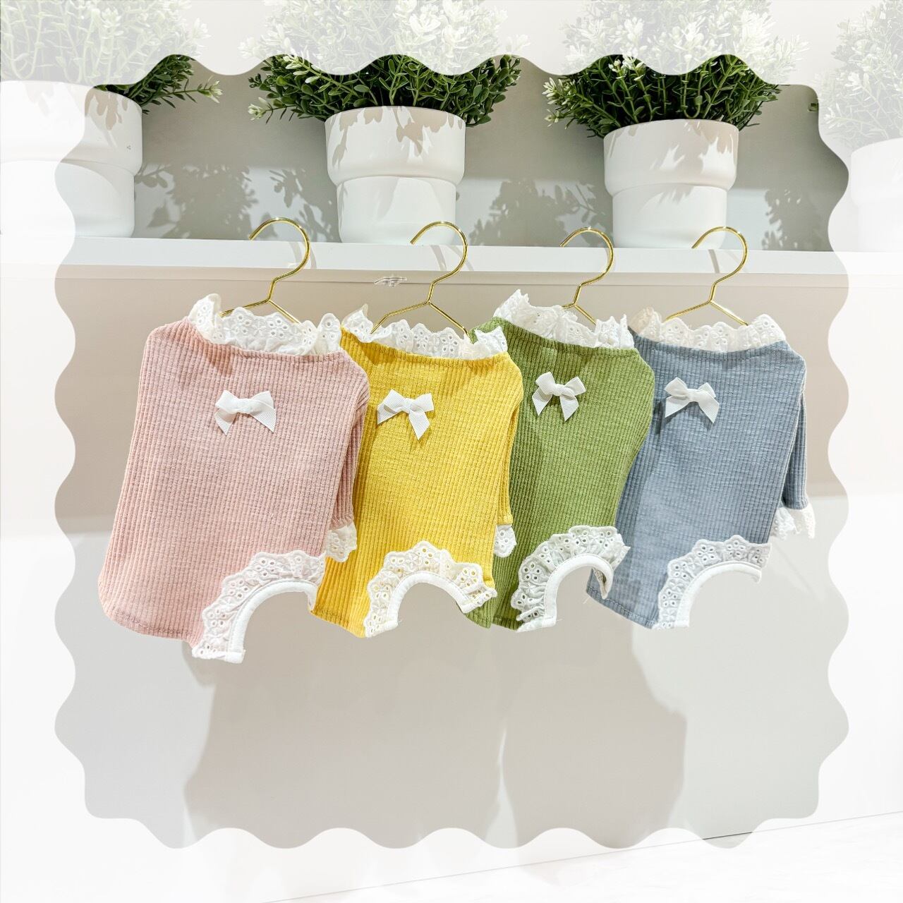 シンプルさと華やかさが融合したレースリボントップス。豊富なカラーバリエーションから選ぶのも楽しくなります!お揃いコーデや、多頭飼いさんにもオススメのお洋服です。