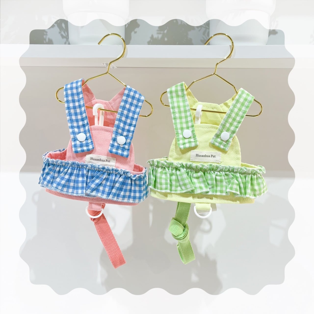 個性的なカラーリングとフリルのデザインが目を惹くチェックフリルハーネス!愛犬愛猫との日常をより楽しく、おしゃれに彩る1着です。重ね着コーデをしたりしてコーデを楽しむのもおすすめです!